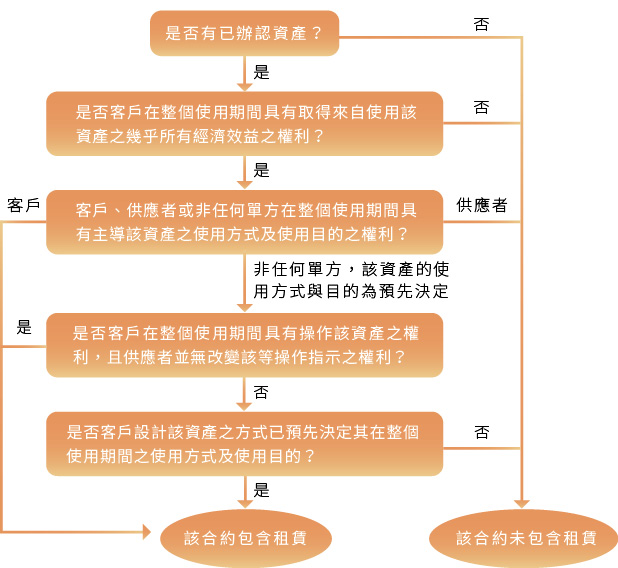 說明:雖然現行出租人的會計處理與IFRS 16並無太大差異,但不論承租人或出租人,皆應以該流程圖判斷該合約是否包含「租賃」。
