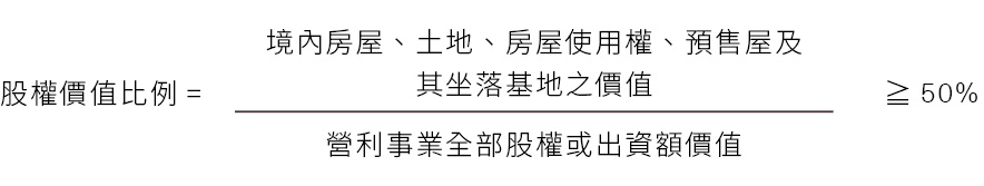 個人或營利事業出售其投資國內外營利事業的股份(或出資額),同時符合下列2要件,不論出售部分或全部持股,均應依房地合一稅2.0課稅: