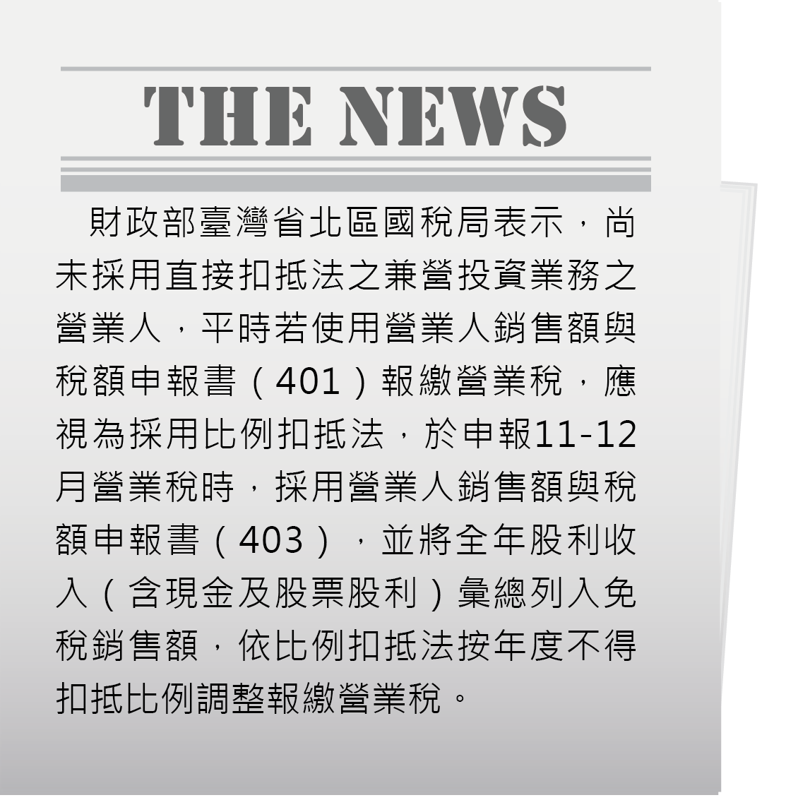 ※ 特別注意,若原採直接扣抵法,原應每期以403方式申報,但某期改回401申報,則代表採比例扣抵法,應計算不得扣抵比例。(如下圖)